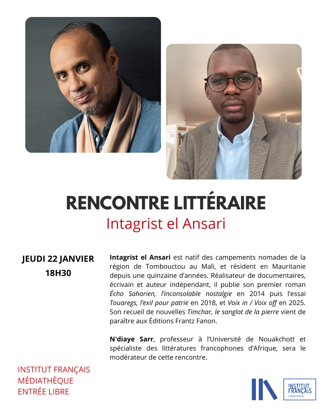JEUDI 22 JANVIER : RENCONTRE LITTÉRAIRE